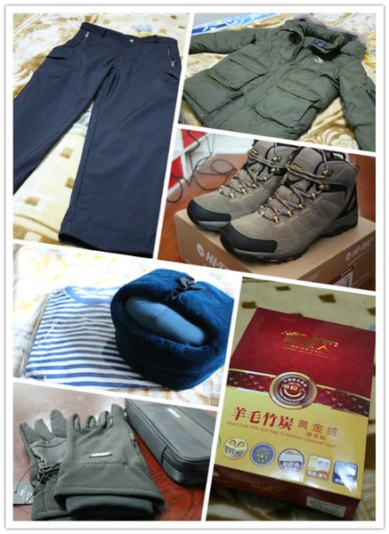 行前准备,除了那个帽子,基本上都用上了。PS:这雷锋帽子戴上实在是太热了!