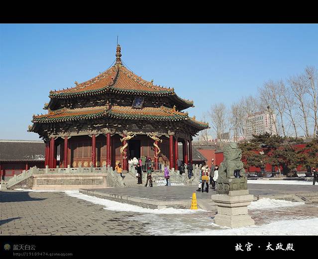 崇政殿是外朝的中心,民间俗称金銮殿,皇帝就坐在这里上上朝神马的。公元1636年,皇太极在这里举行大典,将后金的国号改为大清。