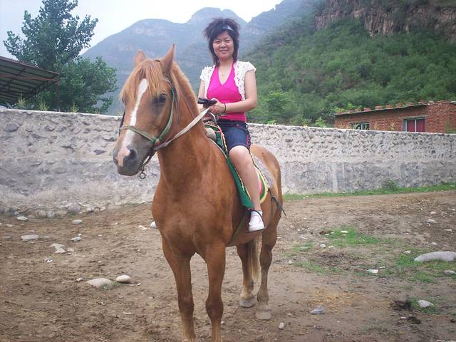同事几人一行前往延庆龙庆峡,坐在车上看着一路的风景,有说有笑,很快就到了目的地,里边可玩的项目有很多,有两个胆大的同事选择了蹦极,我负责帮他们拍照留影,但距离实在太远了,只看到一个小点由上而下,呵呵,还有攀岩,一个女同事好勇猛第一个爬到终点敲响了锣声,到了骑马的项目时我还有点胆小不敢骑,但看到同事们都骑,我也选了一匹看着老实的马骑了上去,别人的马都跑了起来,只有我的马悠闲的慢走,呵呵,看着别的马跑,我骑的这只也上去追,吓的我赶快拉缰绳,还好没跑远,屁股还挺疼,玩了几个项目同事们都累了也饿了,找了住的地儿,农家饭还不错吃过中饭,休息了会,到了晚上有我们一行人走在小路上,有清清的小河水,夜晚更安静水声更清晰,路边的卡啦ok,放着音乐,大家兴趣正浓,你一首我一首,喝着啤酒吃着肉串,玩到很晚,才回住处。