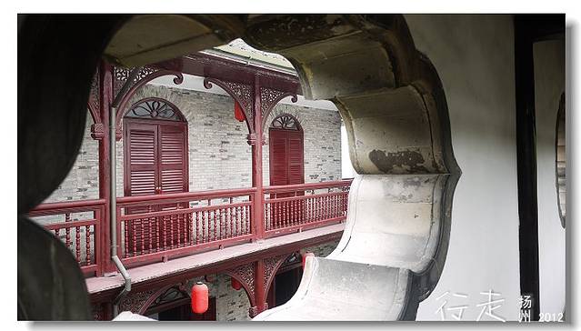 回廊上的花窗,共有十几个,每个造型都不同,隔窗而望的是绣楼,以前的富家小姐都不能下楼,小姐房内摆设都很西洋化了,有钢琴,有蜡台,蕾丝边的床帘,体现了扬州盐帮漕帮的富庶。