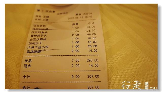 当天晚上是九点左右到扬州的,很多酒店都不提供晚餐了,原本的打算也落空了,在如家边上的小巷里随便找了一家只有我们几个人用餐的小饭店,价格很实惠,是真的实惠,出门在外能有这种感觉真的是不容易。