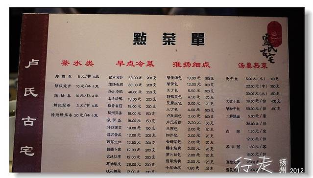 千里迢迢来这边当然不是光看建筑的,最重要的就是来喝早茶的。卢宅早茶,不预订,只接待散客,中餐晚餐只预订,不接受散客,但在大众点评网上评价还是极好的。包子的价格其实也还好,毕竟是一家很有特色的淮扬小吃的餐馆