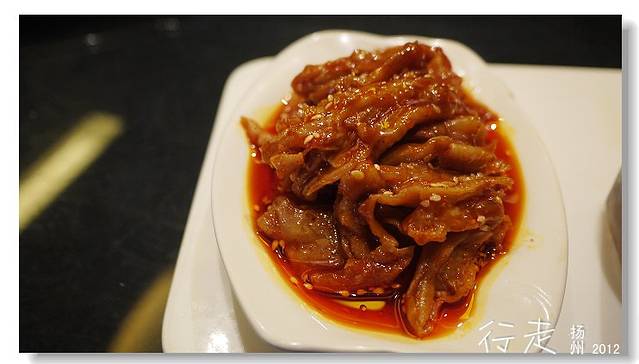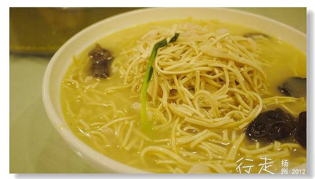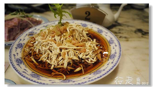 这个是中份的烫干丝,来扬州干丝是必点的,干丝的煮法分为两种,一种是煮干丝,一种是烫干丝,相当于凉拌类的。干丝切的很均匀,有虾仁相伴,味道只有酱香,而清淡,很容易裹腹。