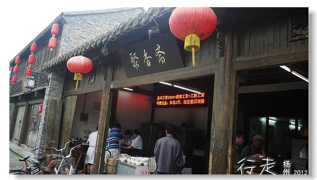 今天细雨绵绵,在这种气氛中逛扬州城不失为一件美妙的事。原本今天要去共和春茶社吃早餐,顺便逛逛边上的绿扬旅社,可是计划不如变化快,今天早上还要去逛老街,去个园,还要去瘦西湖,算了,还是随便路上买点吃吃吧。这一次是最近几次旅行时间最紧的一次。