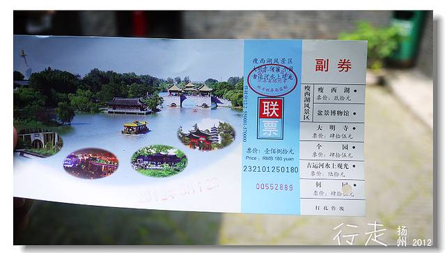 如果您可以在扬州静待两天,建议你买联票,这些地方还是值得一去的。180元的联票,包括个园、何园、瘦西湖、大明寺及古运河水上游。