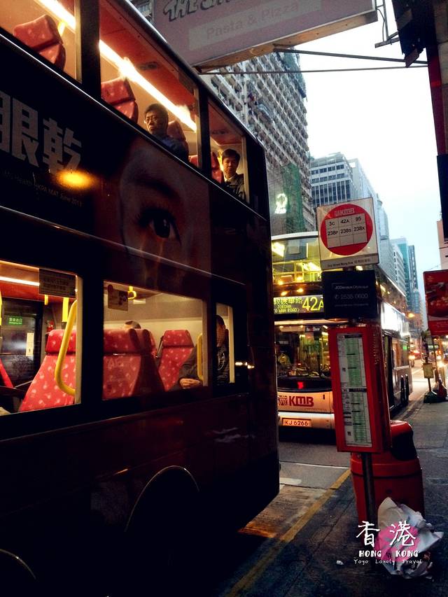 从机场坐A21到【旺角】,车前身是专门放行李的架子,很人性化。很困的我们一边看着香港的夜色,吹着晚风,在车上进入梦乡……还好没有坐过站。