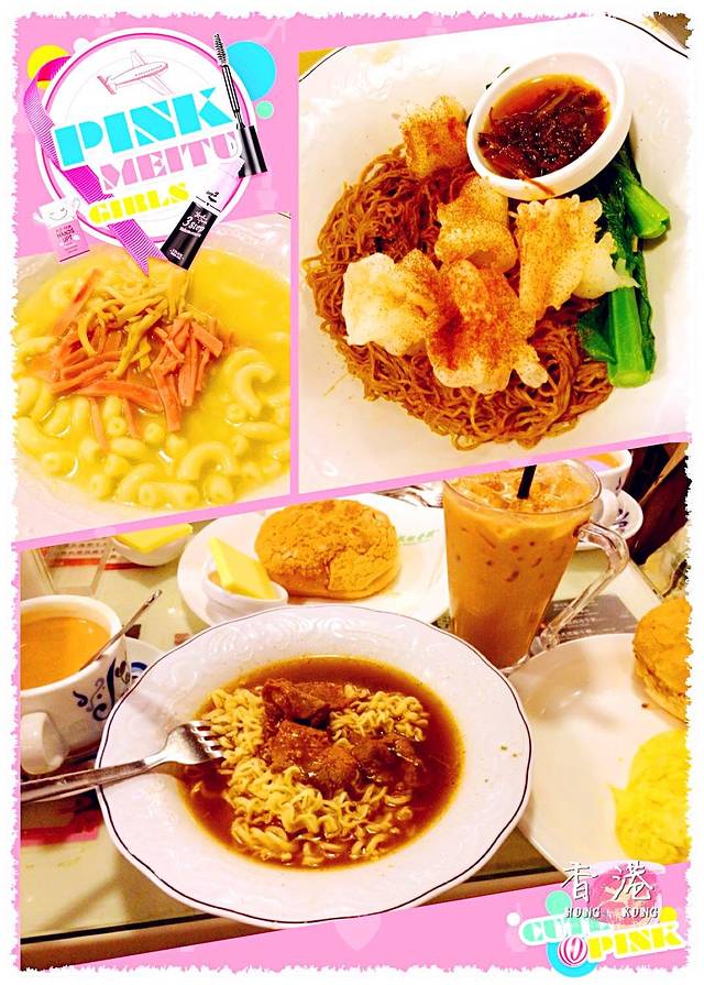 拐来拐去到了一个【广州烧味】的店子,点了“公仔面”套餐其实就是方便面。奶茶味道太浓了!!!
