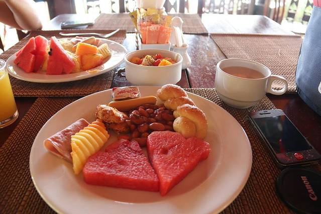 早上睡到自然醒,宁静的海滩,在露台享用了一杯咖啡后,先去餐厅用早餐。