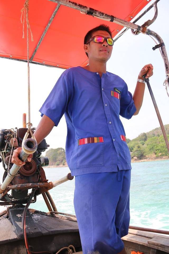旅行社报一天团多是围绕玛雅湾(小PP岛),蛋岛、竹子到、蚊子岛等(并不全去),大船接载,船上包午餐,价格好像大概200多起,这种适合住在普吉岛上的,住在PP岛上更适合自己包船,鬼佬中意一大帮人租快艇,我不想太多人,而且长尾船更有当地特色,和一个“摩托型男”讨价还价,其实在泰国真的不用怕沟通,以前学的英文够用加上肢体语言就可以,“OH,expensive!!cheap!!cheap!!cheap!!”最后谈到2500B七个小时包游玩所有岛,四川夫妇原来读英语系都不敢啃声,她很佩服我和红太讲价的功力,其实只是他们不敢放开而已,而我们却觉得是乐趣