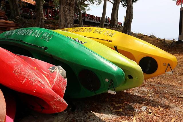 酒店有免费的独木舟提供,大部分的老外一帮人喜欢租快艇,还有的就喜欢玩独木舟,碰面我们都会互相问好和挥手致意