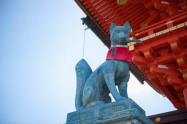 伏见稻荷大社内有很多狐狸像,据说狐狸是稻荷大神的守护神兽
