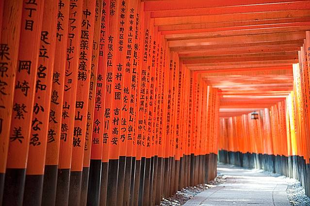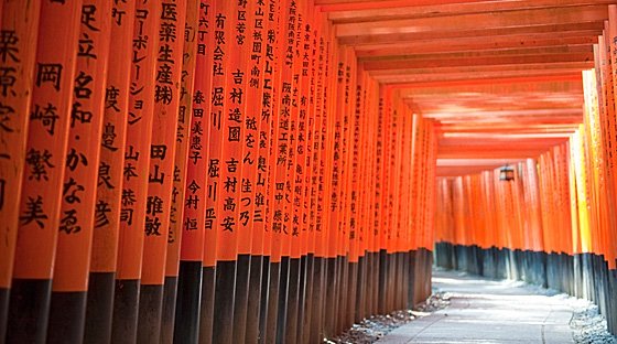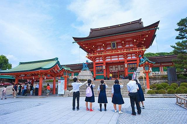 伏见稻荷大社是遍布日本全国三万余座稻荷神社的总社本宫,也是京都市内最古老的神社之一,始建于8世纪,主要是祀奉以宇迦之御魂大神为首的诸位稻荷神。稻荷神是农业与商业的神明,保佑世人五谷丰登、商业繁荣、交通安全等。由于每年都有大量的香客前来神社祭拜求取农作丰收、生意兴隆、财运亨通,使得该神社成为京都地区香火最盛的神社之一。另外,起源于江户时代的习俗,前来此地许愿的人们往往会捐款在神社境内竖立一座鸟居来表达对神明的敬意,使得伏见稻荷大社的范围内竖有数量惊人的大小鸟居,成千上万座朱红色的鸟居构成一条通往山顶的通道,沿着山势绵延数公里,这段路程成为京都代表性的风景之一,而以“千本鸟居”之名闻名日本全国和海外。