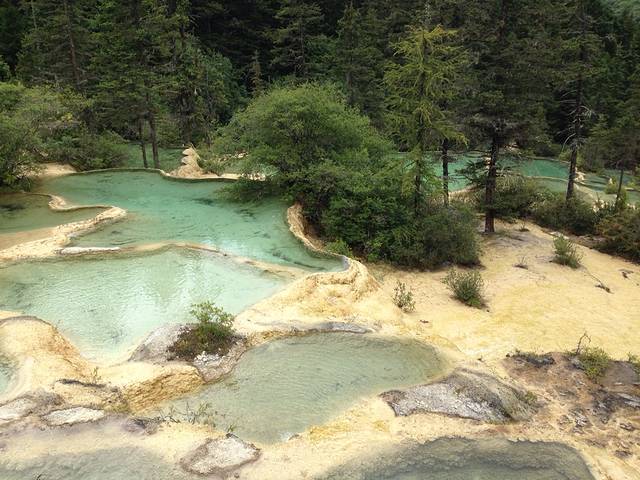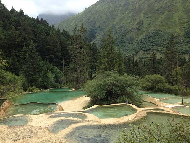 还没有去之前就各种期待,看网上的图片就知道哪里好美,上了去黄龙的大巴,发现一路上沿途的风景也好美。景区里面是可以做索道上到山顶的,但是因为我和亲爱的都想好好欣赏,散散步聊聊天,所以我们选择爬山,不过由于是下午去的,我们在路上拍照耽搁了太长时间,所以就只爬到了半山腰,没有看到山顶的五彩池,现在想想都有点遗憾呢