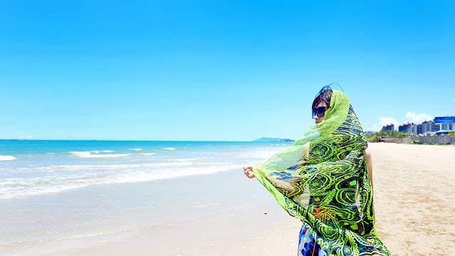 大东海开放型沙滩,拍照还是可以的,我是正午趁着人少的时候去拍的。累了,到沙滩上躺一躺,让那沙子覆盖在身上,遮挡去一切。静静地、无欲无求的、什么不想的躺在那里。阳光暖暖的、倾斜下来、照在身上、脸上。