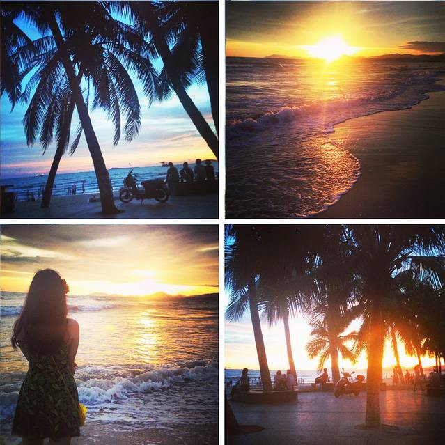 在亚龙湾没有看到落日觉得人生不完整,最后一天跑去三亚湾等落日,本以为天气变多云看不见了,结果走着走着出现超美的天。