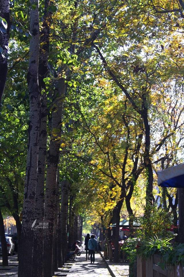 三里屯银杏大道位于三里屯东五街,是在马路两侧,不像钓鱼台那种在中间步行, 两边是。属于马路两侧,请注意交通安全。建议穿旅游鞋,方便行走。