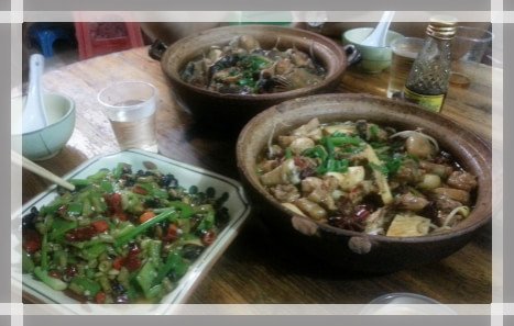 差不多中午十二点半的时候,肚子正饿得咕咕叫呢!导游来电话,让我们到一个地方集合,去品尝南山特色素斋。