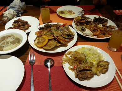 很幸运的呢!因为拼餐比较便宜的呢~而且还可以吃很多海鲜呢。。。