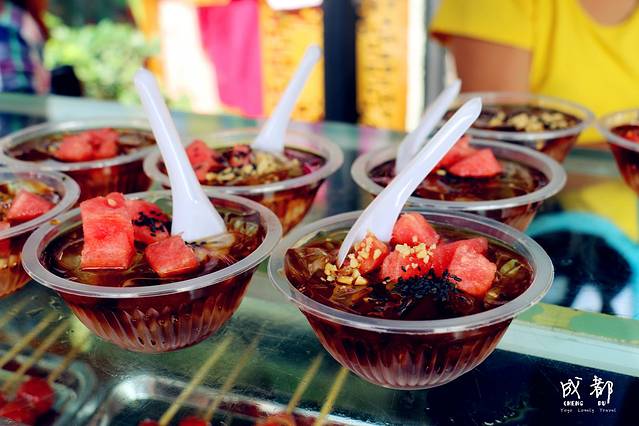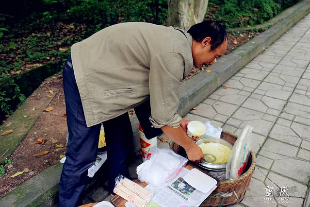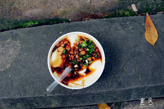 豆花,也就是我们的豆腐脑。路边挑担人售卖的永远比店子里的好吃,味正,还包含着很多感情。你能看到他的举手投足,听到他询问你的饮食偏好,还能感觉到他端到你面前时眼睛里透露出的期许,这是厅堂里没有的感动。