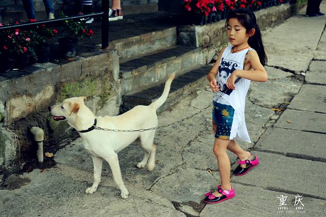 一直以来的旅行都喜欢拍猫狗,这次却连带着汪星人拍到了可爱的小主人,她们不知道谁牵着谁,谁的劲大,踉跄的走着,谁也不让。