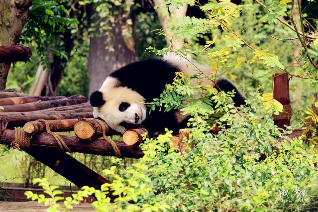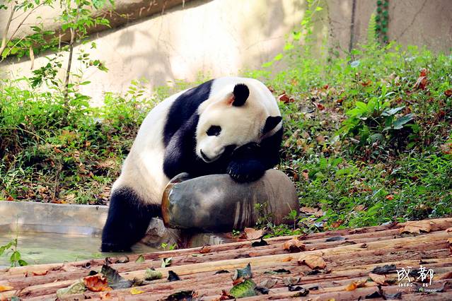 院子不大,熊猫没看见几只,和以前在动物园里看的真没什么区别。这只熊猫一边睡觉一边在池子里涮脚,偶尔还抓抓脚心,下辈子投胎做熊猫真心不错啊~