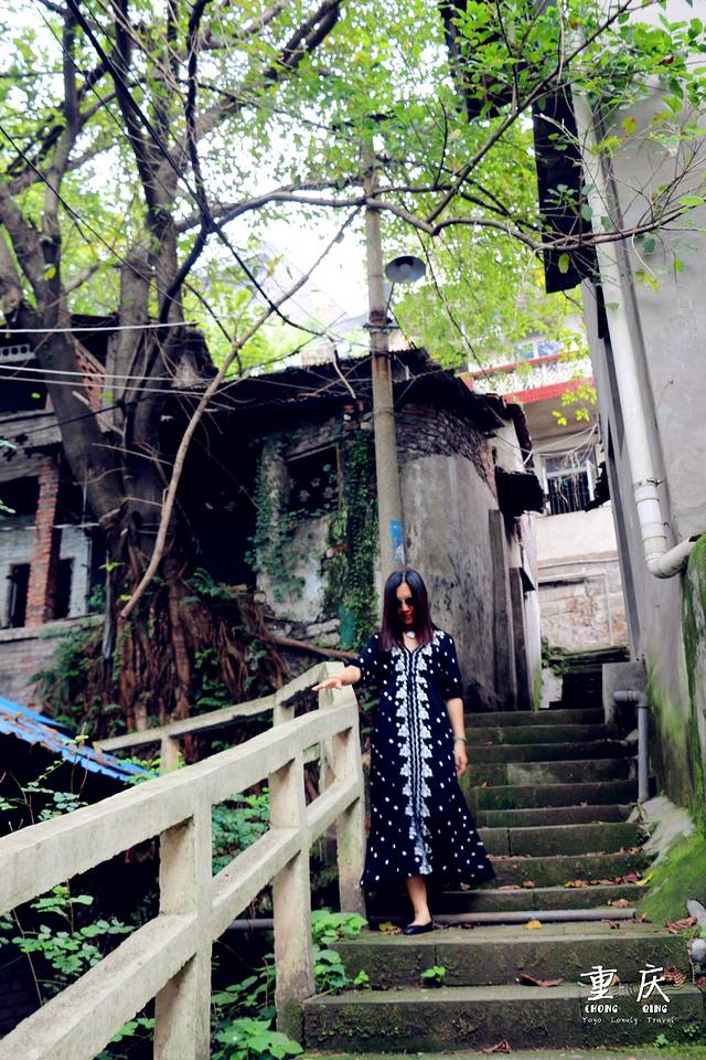 从渣滓洞到磁器口一条下山路,是一片待改造的旧城区。山城人的旧日生活历历在目,破碎的窗户,歪斜的窗棂,被爬山虎密密麻麻盖住的墙壁和屋顶,摇摇欲坠的扶梯都在静谧里讲述着一段段温馨热闹的故事。曾经有孩童在这里叼着烧饼匆忙的去学堂,有身后唠叨的母亲紧张的叮咛,有小夫妻的拌嘴,还有每个夜晚的炊烟袅袅、万家灯火。