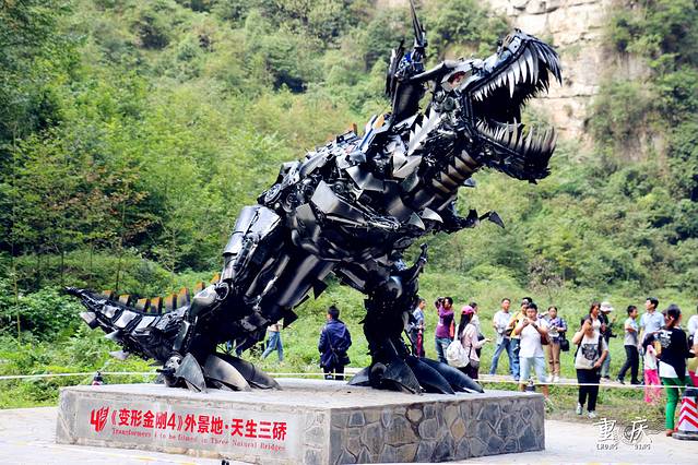 200多米的电梯把我们送到坑底,天坑景点由天龙桥、青龙桥、黑龙桥三座天生桥组成,又有两部有名的电影在这里取景,一部是【卧虎藏龙】一部是【变形金刚4】。