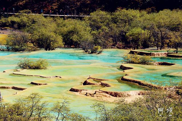 九寨的斑斓是无序的天然,黄龙则是仿若人砌的鬼斧神工。