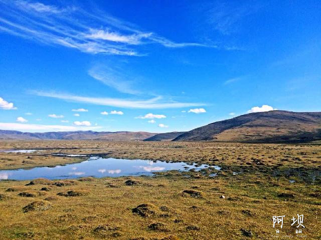 从黄龙出来一路向西是【若尔盖草原】,已是深秋草原没有了青草绿,黄绿相间的广袤间偶尔有水洼映出天上的云朵,像天女特意留下的镜子,可以不经意瞥一眼自己曼妙的身姿。