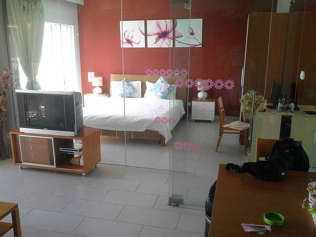 今天入住挚爱百合度假公寓,预订的海景房间,房间内有电脑,还成,就是房间太小了,房间有好大一面镜子,喜欢镜子的可以考虑下