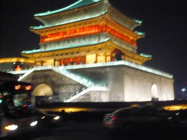 回来原路到了火车站,然后往五路口方向走,有游7直接到鼓楼,如果晚上还是建议坐公交,有公交专线,西安的堵车也很厉害,再加上,火车站的出租车都是不打表的,基本都是两三倍的价格,而且去鼓楼堵车厉害,很多人不愿意去。所以公交车是个明智的选择 。上去20块钱门票,没上去,远远看看就行了,没什么特别的。