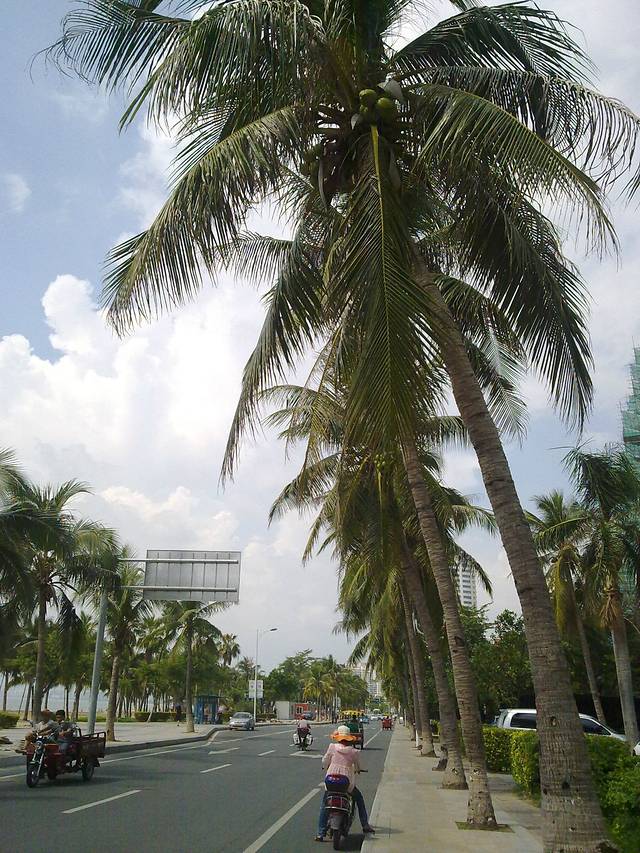 回三亚市的路上,喜欢路边高高的棷子树,可惜没掉个棷子我