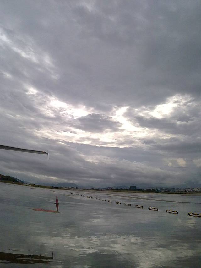到了机场,雨停了,