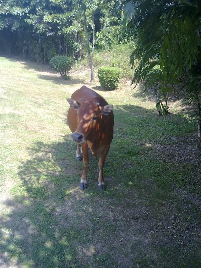 回来的时候,遇到的小黄牛,没有人看,它也不乱跑,真乖