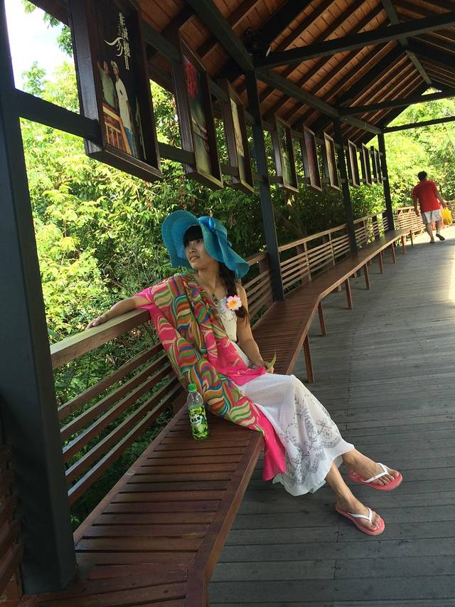 在加油站附近下的车,离亚龙湾热带天堂森林公园100米左右,步行徒中,由于住在公园门口,所以带着行李去的