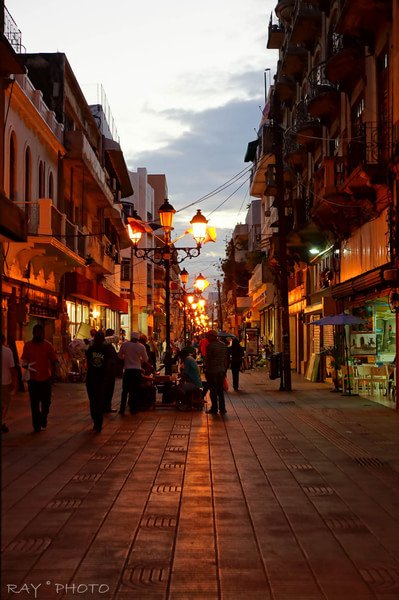 这是傍晚时我们的酒店附近的 Ciudad Colonial 街 (也就是英文的Colonial City )这里是旧城区据说是当时西班牙人来建的 虽然有点破旧 但也别有一番古老的韵味 左边的一票人是下象棋的 a77 HDR 直出