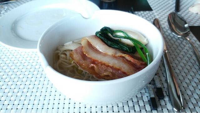 酒店自助早餐好些种,爸爸还是喜欢吃面条加个蛋,肉