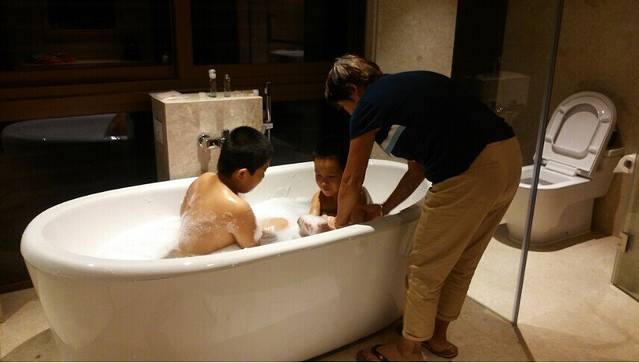 太冷,只能浴室泡泡浴了