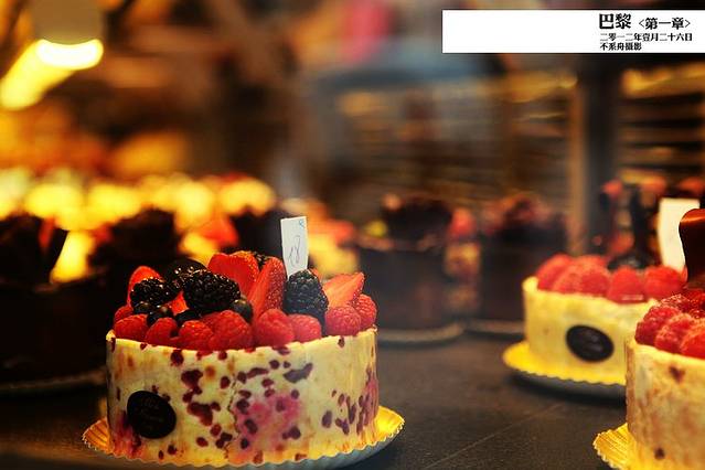 橱窗里刚刚出炉还能看到焦糖在流动的莓子蛋糕,