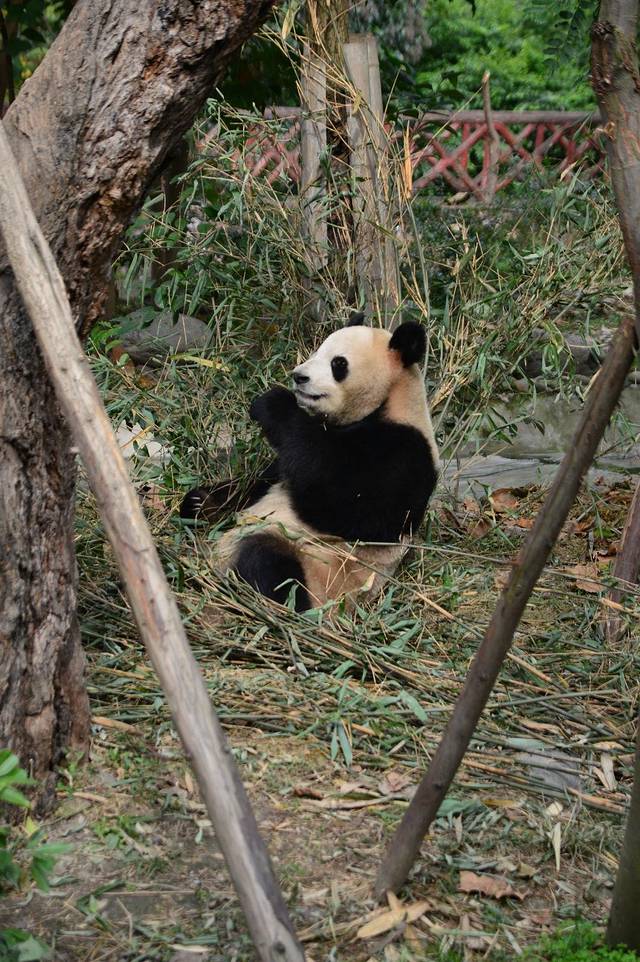 基地里还有小熊猫区,据说这玩儿很凶猛,尾巴很长,上面有9道环,又名九节狼,本来挺萌的,听着名字突然就觉得慎得慌