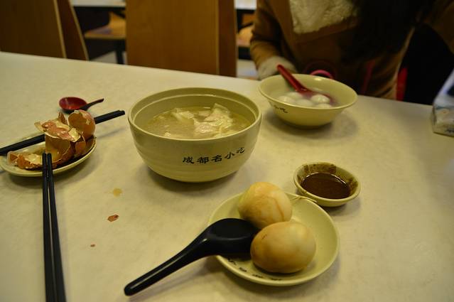 终于有一天不用早起了,也为了体验成都人悠闲的生活方式,睡到自然醒,洗漱完直奔赖汤圆吃早点,这家还其他的成都小吃,除了赖汤圆还点了龙抄手,感觉和普通的汤圆没太大区别,谁让人家做成品牌了呢,抄手确实比早点摊儿的好吃,汤浓馅滑。