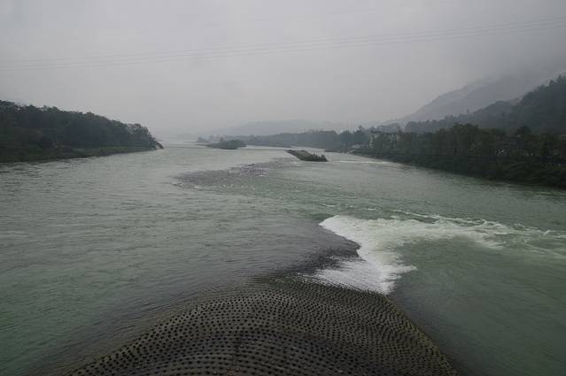 俗称的鱼嘴,左侧外江,右侧内江,自动排沙,自动泄洪,不得不惊叹古人的智慧,那个时候没有物理定律,没有软件仿真,却完成了如此浩大的工程并沿用至今。