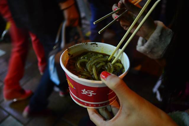 看完夜景继续坐地铁去好吃街吃小吃,这地方是个步行街,很多本地人都来这里逛吃,有不少小吃,也是朋友推荐的。