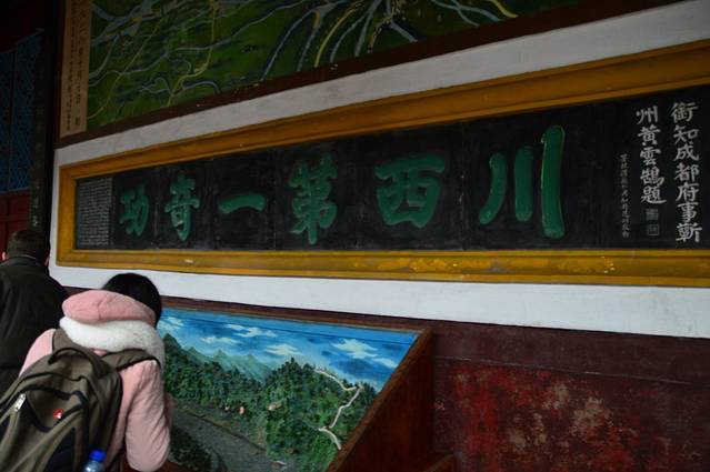穿过堰功道就到了伏龙观,里面是一些历朝对都江堰工程的褒奖和介绍,还有一些出图的文物。