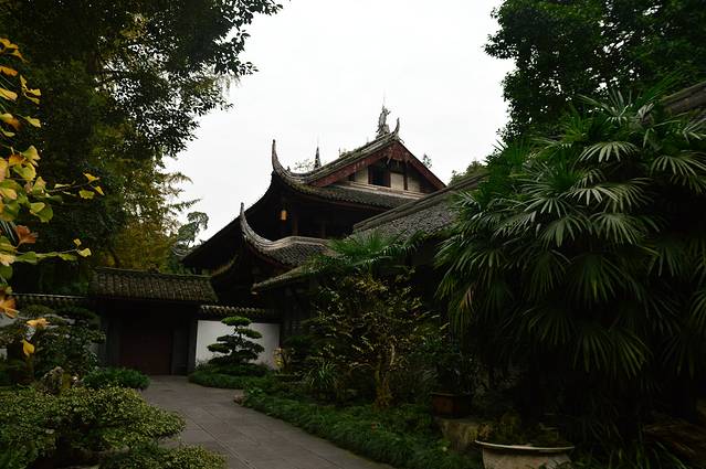 个人感觉四川整体对景区和城市的管理非常到位,到处都是保洁人员,再加上气候湿润,显得非常干净,有的地方地上连落叶都没有,而且景区之间相互售票,买票后还有免费班车送过去,去过这么多地方,这还是第一次,印象非常深刻,让人耳目一新。在武侯祠买了杜甫草堂的票,坐免费班车(金杯)到了,看介绍是杜甫躲避安史之乱时的住所,当时只是个茅草房,经过几朝的翻修扩建,已经非常豪华了