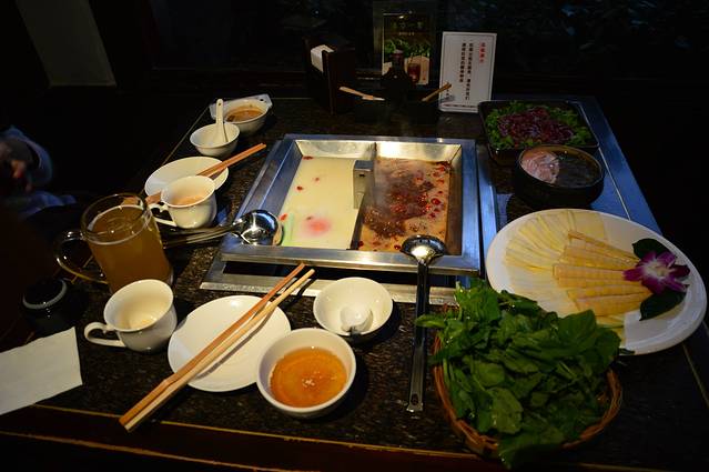 逛完人民公园又陷入不知道去哪儿的境地,女友灵机一动说川剧应该看看,于是赶紧大众点评,发现有个蜀风雅韵的茶馆不错,既可以品味老成都的大碗茶,又可以看川剧,还有团购,80~200多分4等,选了个第三等的,预约完打车过去在附近还找到了这个皇城老妈火锅店,后来本地人也证实这家店也算是正宗成都火锅,两个人有小锅,惯例鸳鸯锅,味道很不错,食材新鲜,洗的干净,不过价格也不算便宜,一分钱一分货吧,感觉还算值。