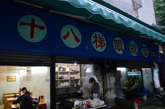 安顿好住处后就开始觅食了,自从舌尖播出后,重庆小面就火了,第一个要尝的当然就是小面了,看了网上的推荐,发现这家十八梯眼镜面算比较有名,又离得比较近的,于是坐公交就去了,挺小的门面,而且不朝街,不仔细看找不到,嘱咐微辣,吃到后来还是嘴里要喷火的感觉,不过味道还不错,素的10块钱一碗。