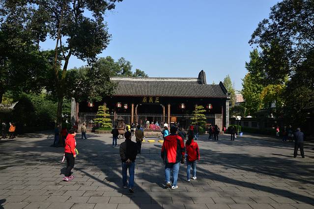 本来吃完打算去看大熊猫,宾馆前台说新南门汽车站有车直达,但是到了发现车已经取消了,坐公交转车去要1个多小时,据说大熊猫中午还要午休,不见人,就打算转天早上去。自由行就这点好,想去哪儿去哪儿,直接改道武侯祠。