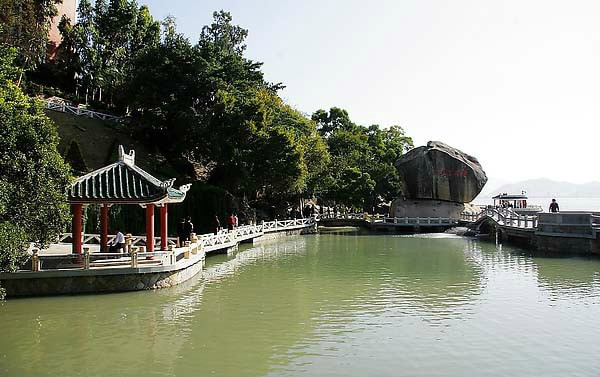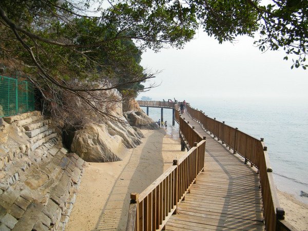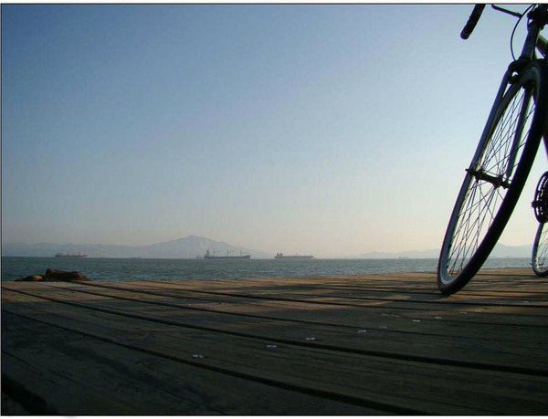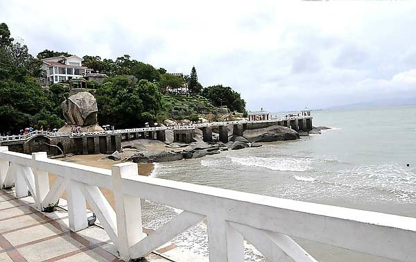 穿过南普陀寺就是厦门大学了,我们没有多走,因为孩子们吵着要到环岛路骑自行车,于是问了几位学生后,我们从厦大的白城校门出去,穿过人行天桥就到了胡里山炮台附近的环岛路了。