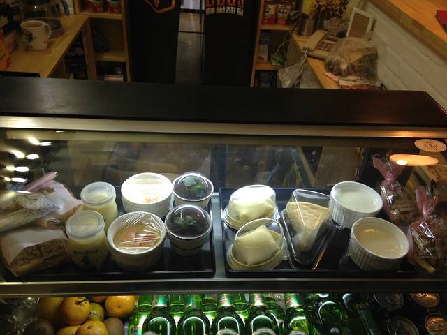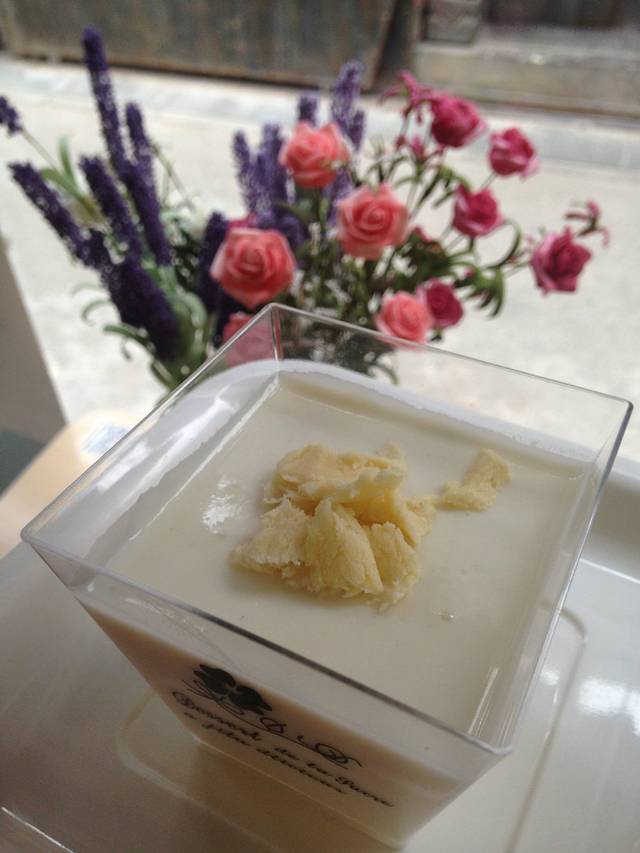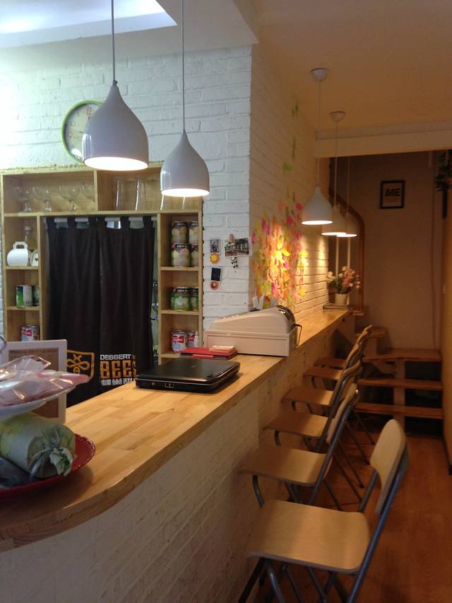 小店环境很干净简洁、各种小细节,看得出来,老板很用心,来得很早,店里还很安静,这就是胡同深度游的好处,实在是让主街道上那乌央乌央的人流给吓着了。老板娘很亲切地跟我们闲聊天,店内的甜品全部都是他亲手制作,榴莲用的是马来西亚最好的榴莲,蜂巢系列甜品,里面都添加了纯天然的蜂巢,还能嚼到蜂蜡呢,据说营养价值是普通蜂蜜的4倍。这家店是他们小夫妻俩开的,说是当自己的第二个孩子。老板娘的样子真真是看不出来已经是孩他妈了,呵呵。
